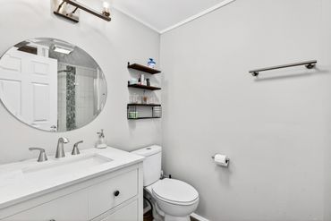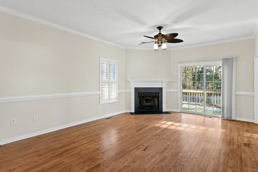 The kitchen is a cook’s dream — decked out with brand-new stainless steel appliances, plenty of counter space, and cabinets for days. The huge living room is centered around a statement fireplace that’s practically begging for cozy nights and hot cocoa season.