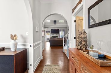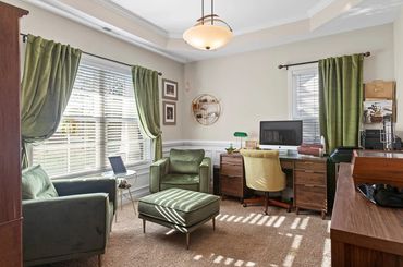The foyer welcomes you to a versatile study featuring a tray ceiling and beautiful wainscoting—ideal for a home office, kids’ playroom, or a cozy retreat.
