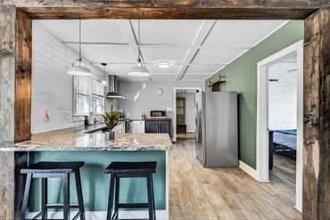 Inside you’ll find 3 bedrooms, 2 baths, and 1,386 sq ft of warmth and wit. Exposed wood beams, statement ceilings, and the original front door repurposed as an interior feature give this home its unmistakable soul. There’s no carpet anywhere, a kitchen with granite countertops and room for real cooking (or dramatic takeout decisions), plus a new roof and HVAC from 2022—because the big stuff should already be done.